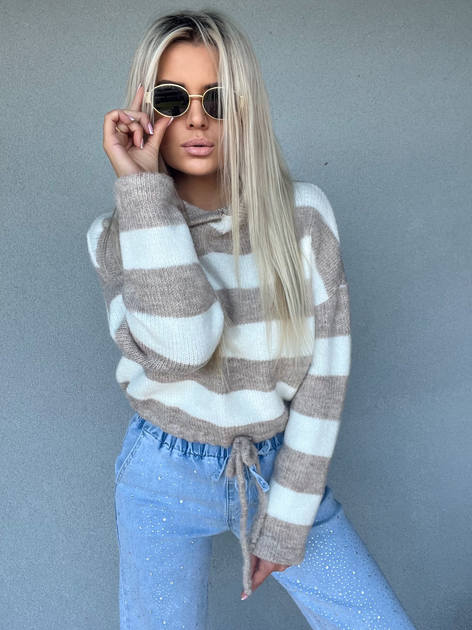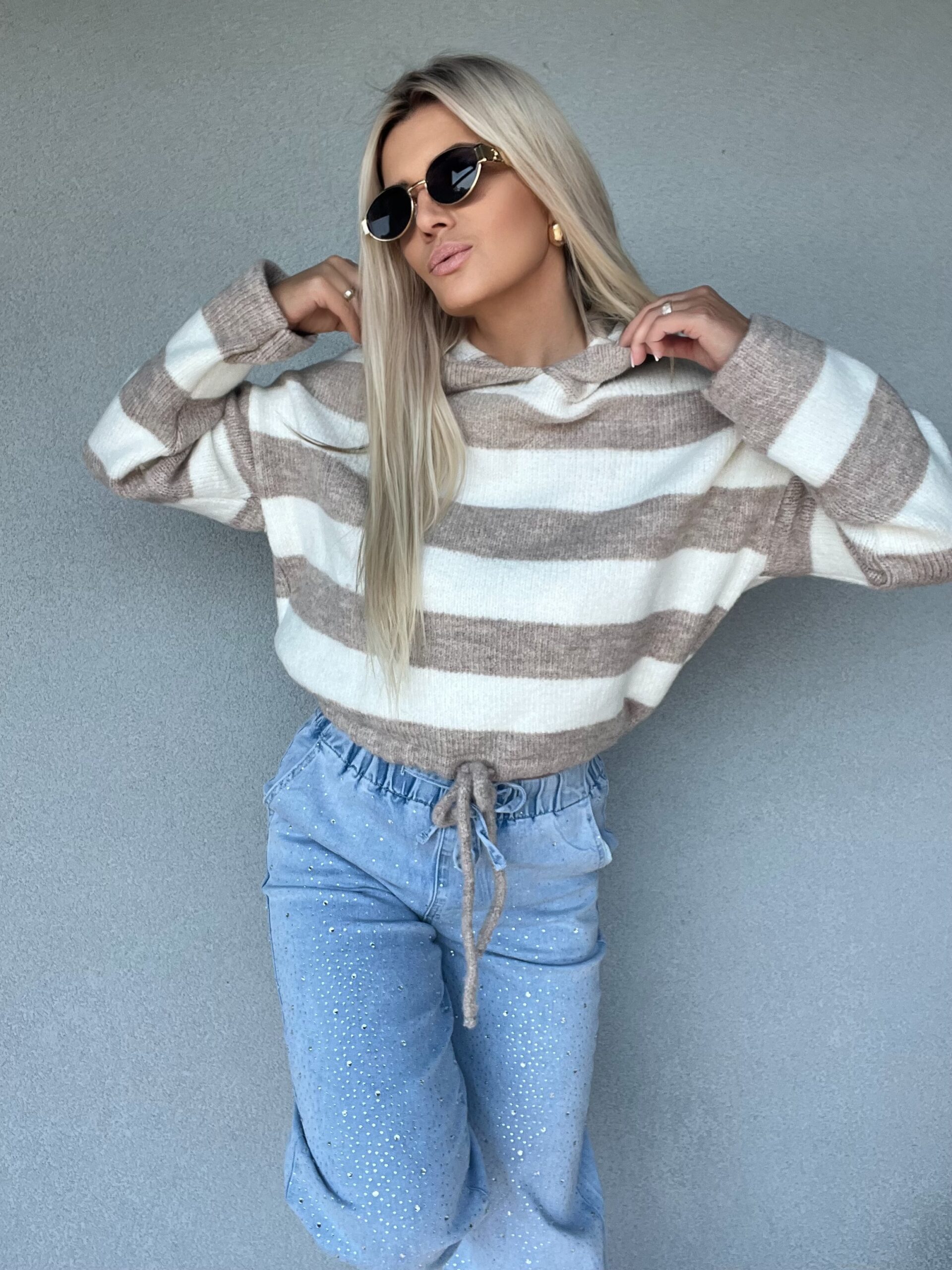 Genialny model sweterka od polskiego producenta w stylowym i szykownym wydaniu. Świetnie sprawdzi się w codziennych i casualowych stylizacjach nadając im stylu wygody oraz charakteru. Wykonany z miękkiej luksusowej wełny sprawi że poczujesz się w nim niesamowicie kobieco i wyjątkowo. To co wyróżnia ten sweterek to stylowy kaptur oraz ściągacz na dole dzięki czemu nadasz swojej stylizacji jeszcze więcej uroku i ponadczasowej klasy . Idealne połączenie kolorystyczne z pewnością zwróci uwagę a struktura z jakiej został uszyty otuli Twoje ciało podczas chłodniejszych dni .