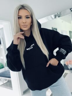 Świetna oversizowa bluza to idealna propozycja na chłodniejsze dni . Model od polskiego producenta który nada Ci charakteru i stylu. Bluza posiada duży rasowy nadruk na plecach oraz duże logo marki . Luźny oversizowy krój zapewni wygodę i komfort. Kolejnym atutem tej bluzy jest świetnie wykonana duża naszywka na rękawie z Logo oraz minimalistyczne logo na przodzie . Bluza z pewnością rzuca się w oczy i robi ogromne wrażenie. Posiada ocieplenie , kaptur oraz kieszeń kangurkę.