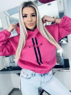 Genialna bluza od polskiego producenta w kolorze fuksji . Znakomita jakość oraz precyzja wykonania to coś co wyróżnia markę LaLu. Model o idealnie skrojonej formie świetnie się układa i leży na sylwetce. Wykonana z miękkiej bawełny z dodatkiem elastanu. Posiada ocieplenie. Model z kapturem wykończony ściągaczami. Uwagę zwraca kontrastowy oryginalny lampas z przodu oraz logo marki. Ta bluza to element garderoby który stanie fundamentem mnóstwa stylizacji. Model który doda szyku a jednocześnie zachowa stonowany efekt casualowych outfitów.