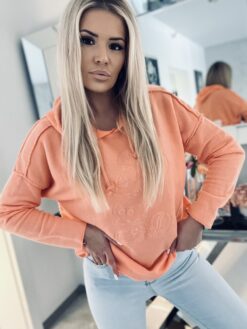 Śliczna bluza z grawerowanym motywem myszki miki na przodzie to ponadczasowa propozycja do jeansów lub legginsów. Wykonana z miękkiej oddychającej bawełny o najlepszej jakości. Model zatory charakteryzuje się przepięknym wiosennym kolorem oraz wypukłym wzorem z przodu. Lekka i wygodna struktura zapewni komfort i wygodę podczas noszenia sprawiając że poczujesz się niezwykle stylowo i kobieco. Surowe wykończenie które zostało wykonane celowo dodaje oryginalności, optymalna długość bluzy sprawia że możesz nosić ją luźno wypuszczona na spodnie lub lekko podwiniętą. Z tym modelem stworzysz mnóstwo wiosennych stylizacji które będą strzałem w dziesiątkę.