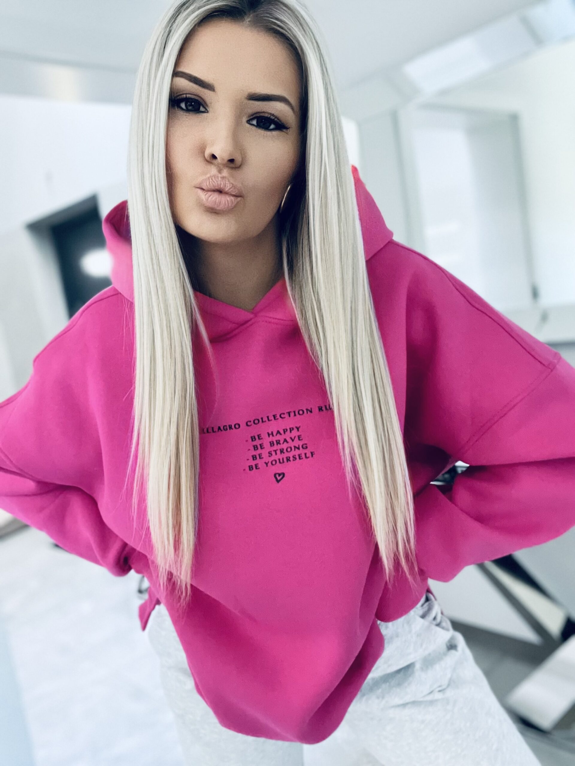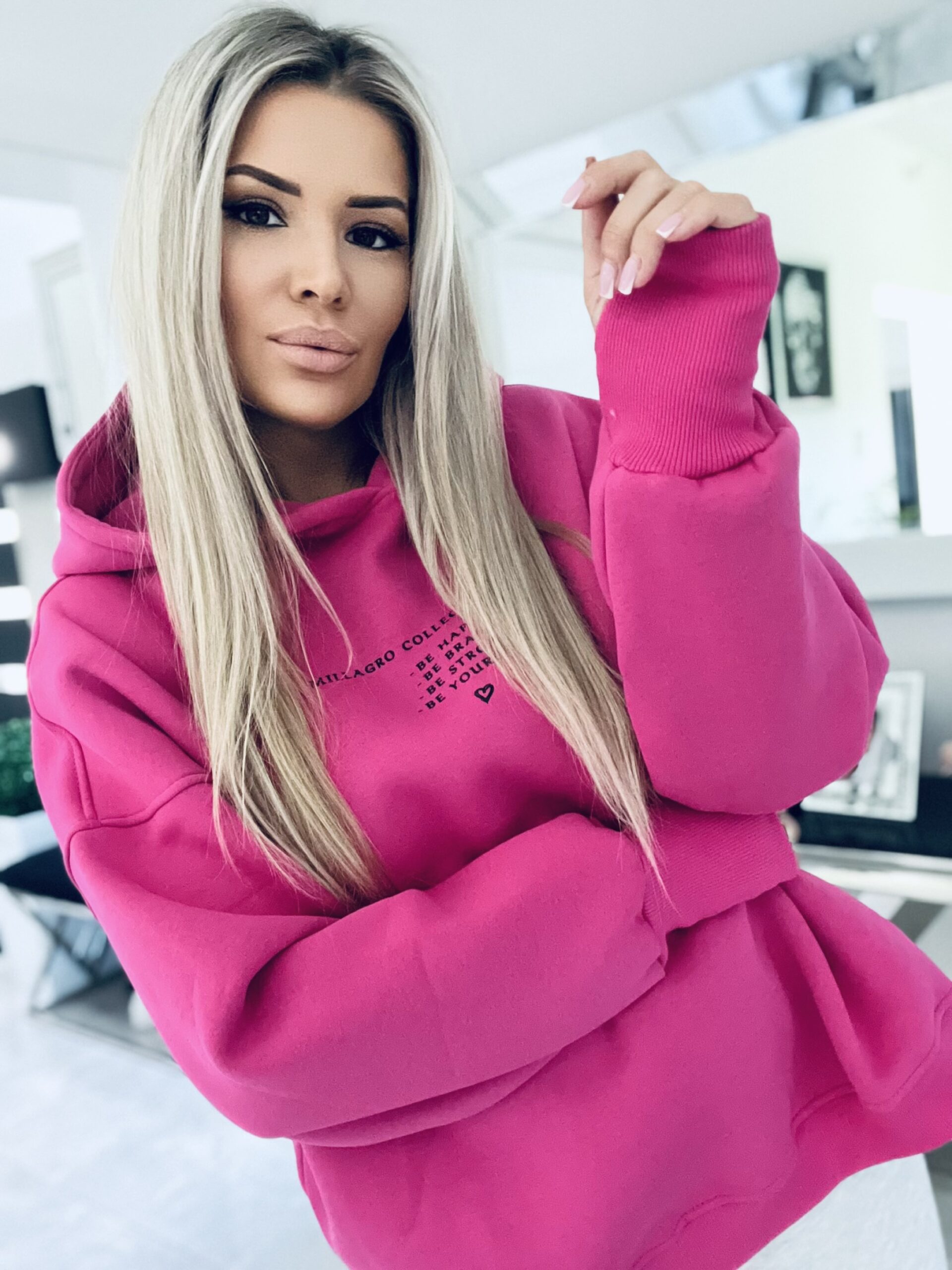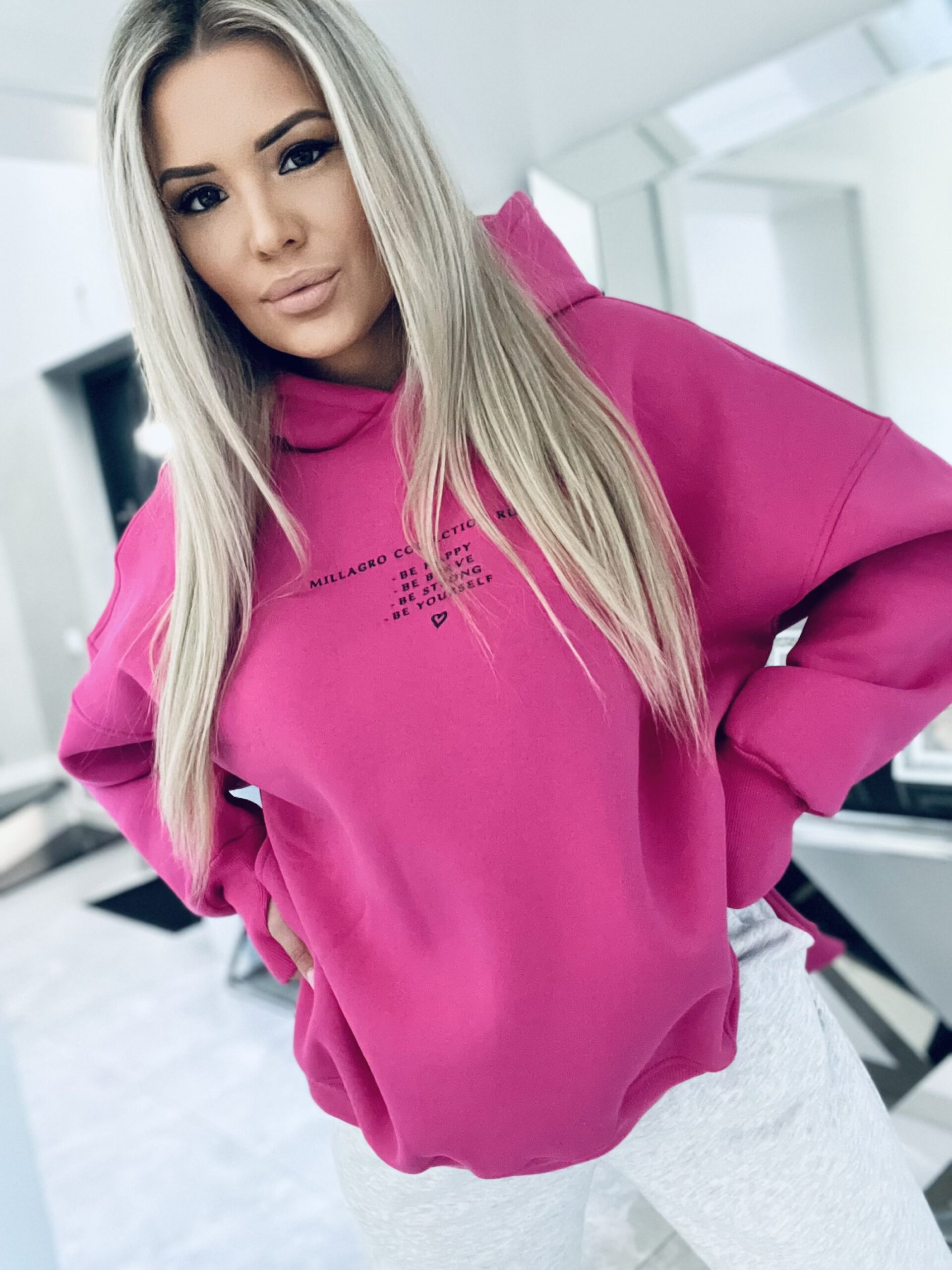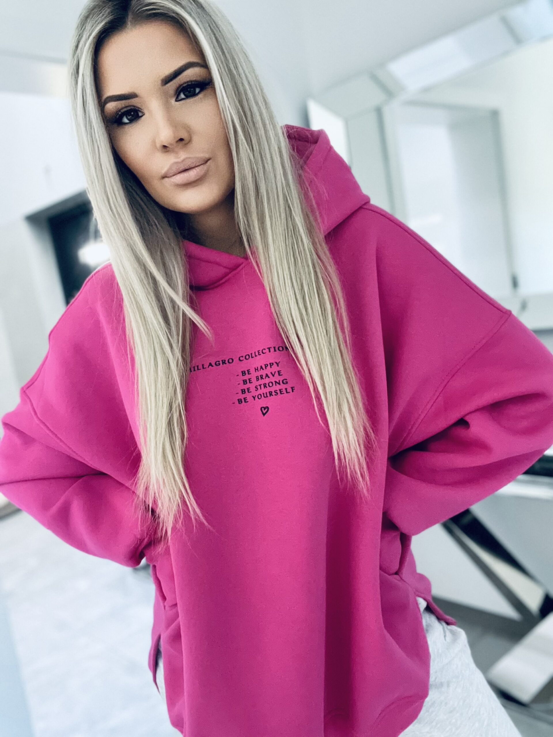 Wyjątkowy model bluzy od polskiego producenta charakteryzujący się prześlicznym kolorem i stylowym wykończeniem. Wykonana z najwyższej jakości bawełny o niesamowicie wygodnej strukturze. Model który z pewnością wyróżni Cię w tłumie. Bluza o luźnym kroju, wyposażona w kaptur oraz charakterystyczne ściągacze na palec . Robi ogromne wrażenie . Minimalistyczny napis z przodu z logo marki MILLAGRO . Świetny model na codzień do casualowych stylizacji .