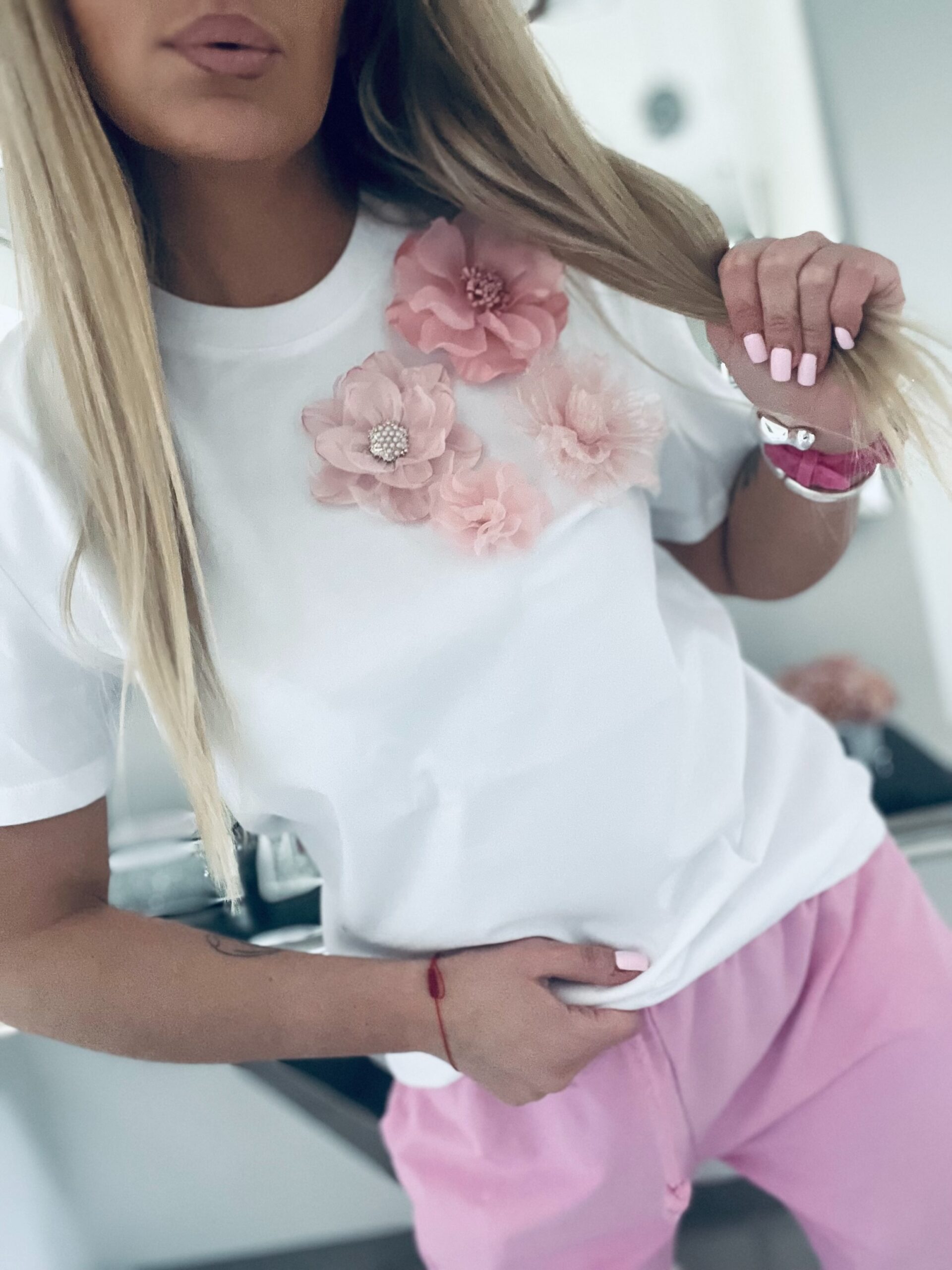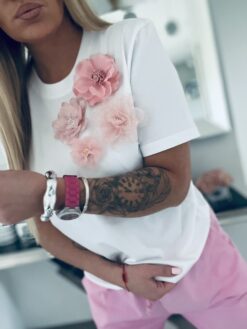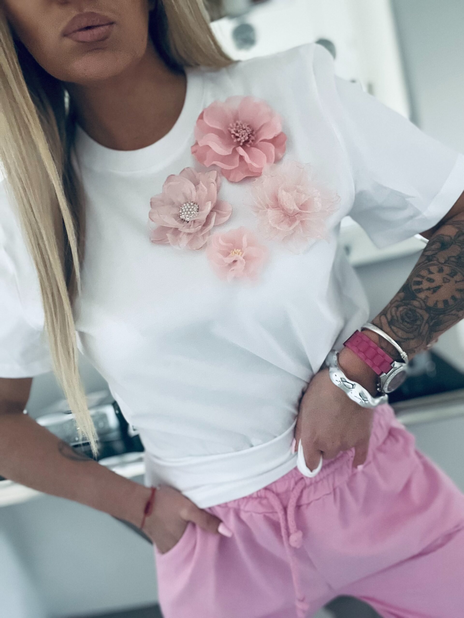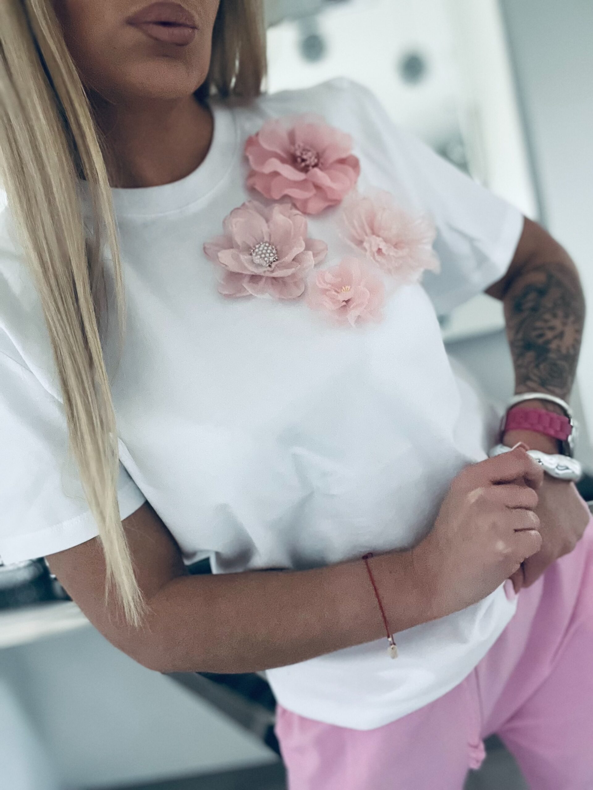 Uroczy model bluzeczki z przepięknym motywem kwiatowym. Idealnie skrojona, świetnie układa się na sylwetce. Niesamowicie wygodna i przewiewna bawełna która zapewni komfort noszenia. Delikatne kwiaty 3D nadaje bluzce kobiecego i świeżego charakterystyka . Lekka i modnie zaakcentowana bluzka którą założysz do jeansów, szortów lub spódniczki. Model sprawdzi się zarówno na codzień jak i na wieczorne wyjścia.