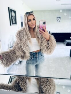 Przepiękne futerko lama w stylowym i ponadczasowym wydaniu . Subtelny odcień beżu wspaniale wpasuje się w jesienne trendy. Model który zapewni Ci ciepło , wygodę oraz komfort . Zapinany na haftkę . Miekkie futerko które w tym sezonie zaprezentuje się naprawdę modnie i efektownie . Wyróżnia się długim gęstym i bardzo przyjemnym włosiem . Z pewnością zrobi ogromne wrażenie do każdej jesiennej stylizacji !
