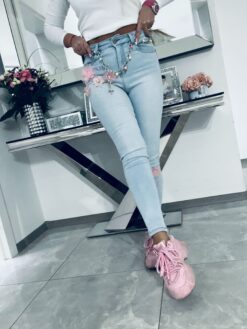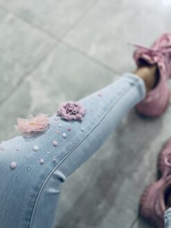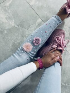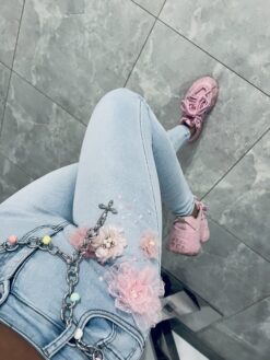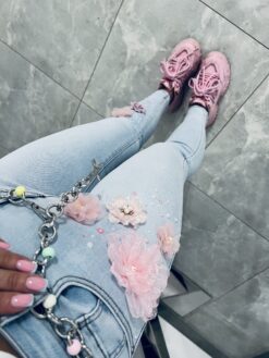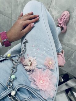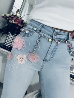 Przepiekny wiosenny model jeansów który koniecznie musisz mieć w swojej szafie, chociażby dlatego że stworzysz z nimi nieskończenie wiele stylizacji. Dzięki swojemu pastelowemu wykończeniu świetnie będą wyglądały z pastelową bluzą, kurtką lub t/shirtem tworząc idelany zestaw. Spodnie wykonane z miękkiego elastycznego jeansu. Charakterystyczny model z pięknymi kwiatami 3D oraz cekinami prezentuje się obłędnie. Pięknie leżą i układają się tworzac tym samym idelaną smukłą sylwetkę. Spodnie z efektem PUSH UP świetnie podkreślają i unoszą pośladki. Jeansy w niesamowicie dziewczęcej odsłonie zrobią ogromne wrażenie kiedy je założysz. Pasek w zestawie.