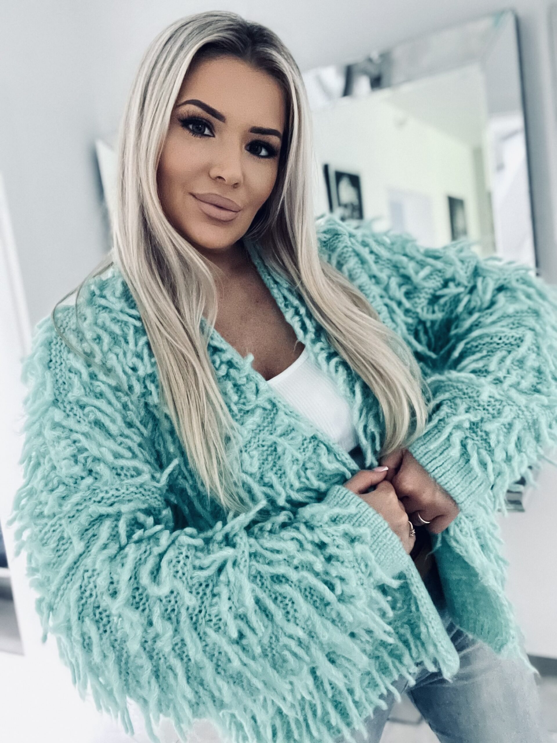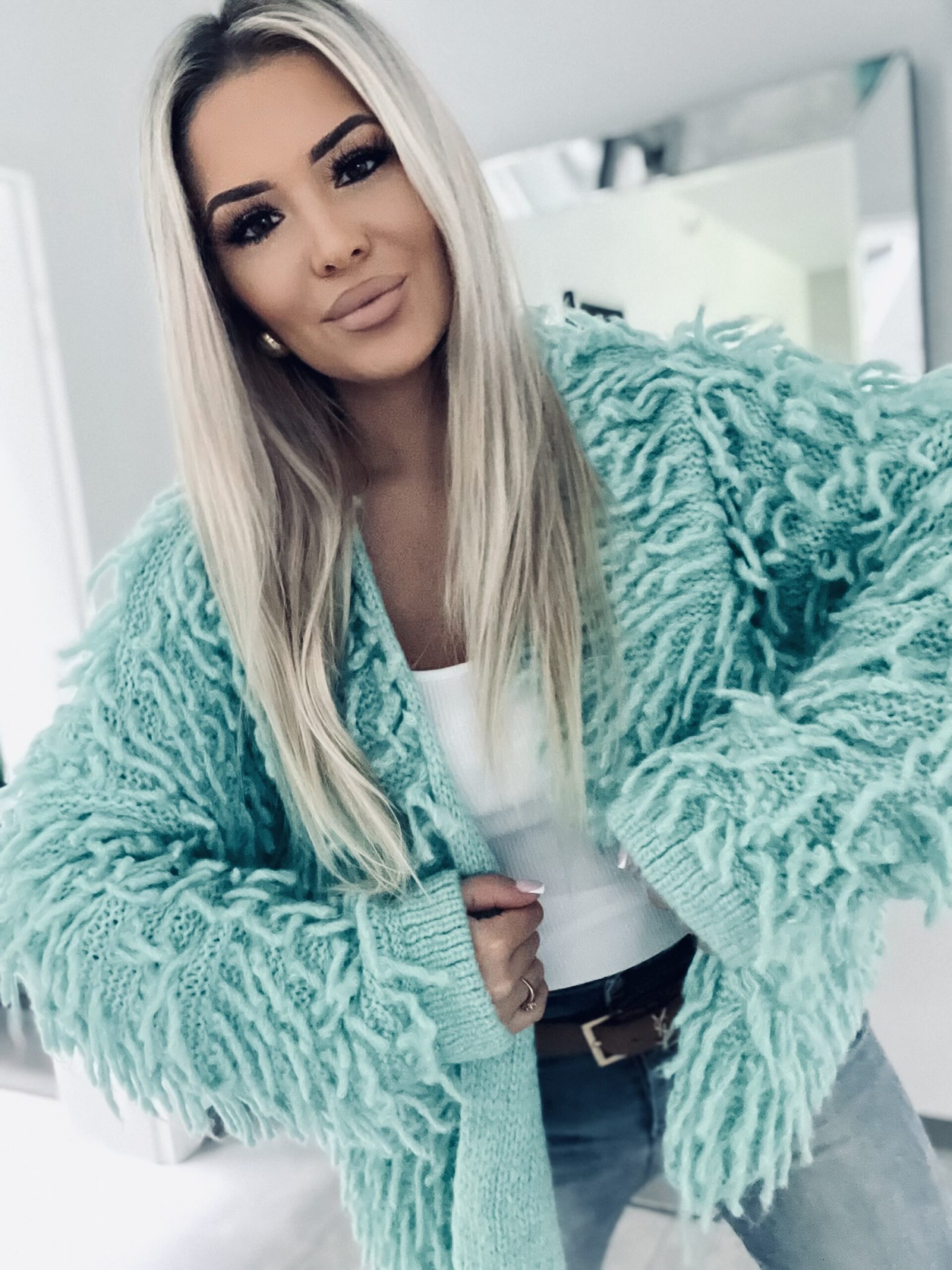 Sweter który łączy przytulną miękkość z modnym designem . Uniwersalny element garderoby który możesz nosić na wiele sposobów tworząc zarówno casualowe jak i eleganckie stylizacje . Wykonany z przemiłej niesamowicie przytulnej tkaniny . Model od polskiego producenta który wyróżnia się oryginalnym kolorem oraz wykończeniem w postaci mnóstwa frędzli . Kardigan który zarzucisz za t-shirt do jeansów lub legginsów . Model który zapewnia komfort oraz wygodę podczas chłodnych dni a jednocześnie otuli i ogrzeje Twoje ciało .