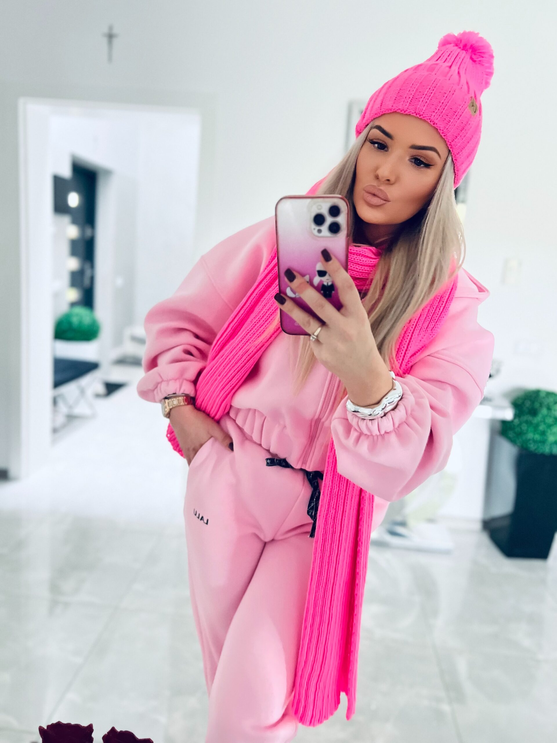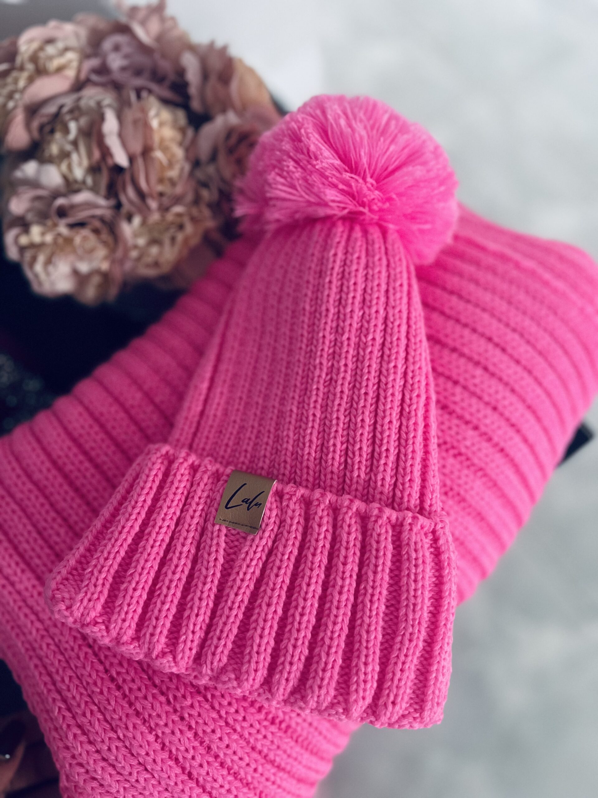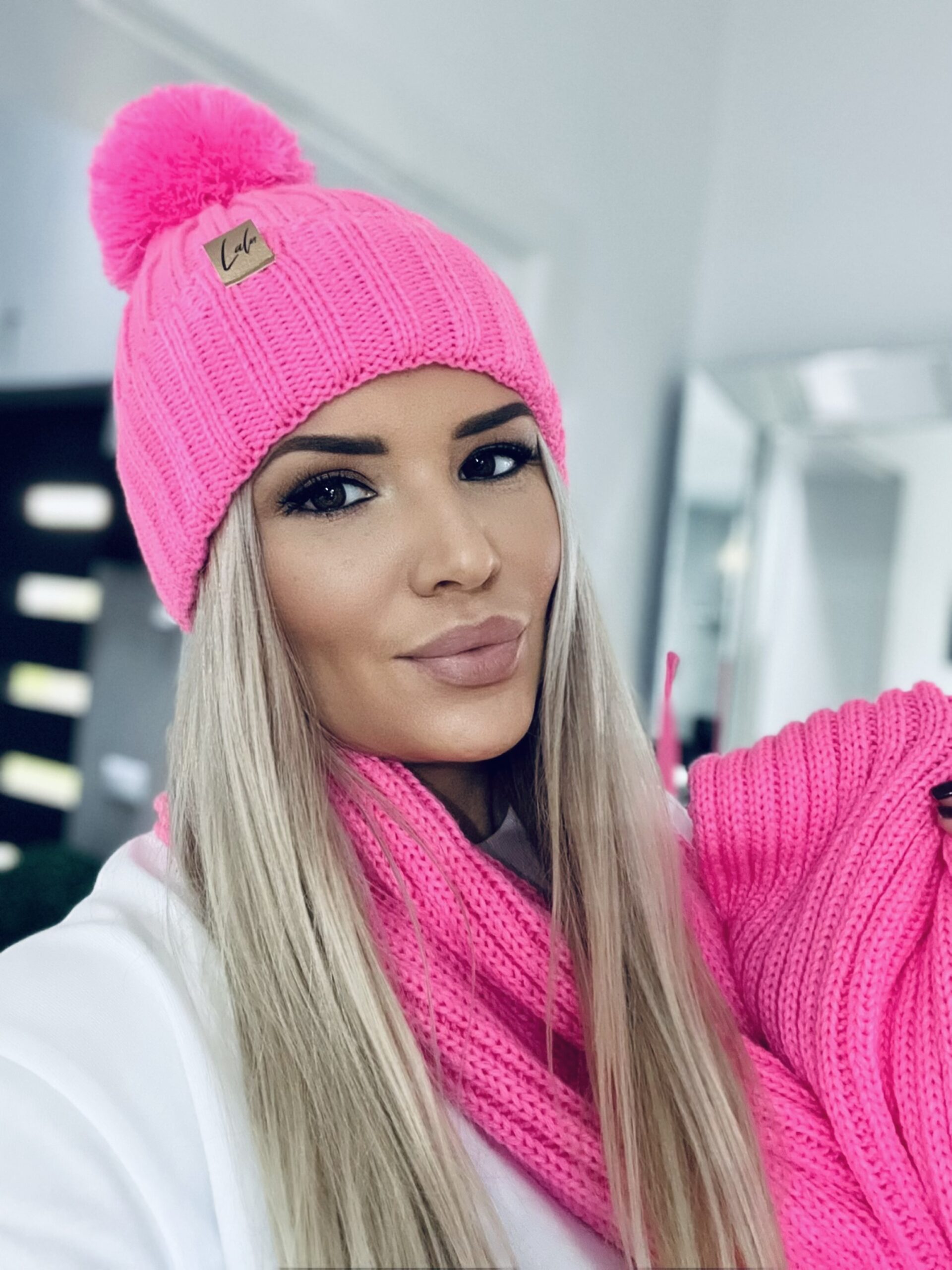 - No Przepiękny zimowy komplet. Czapka i szalik od polskiego producenta Lalu w pięknym kolorze różu . Wykonany z najwyższej jakości przędzy idealnie wkomponuje się w zimowe stylizacje nadając im oryginalnego charakteru oraz modnego designu. Czapka która doskonale dopasowuje się do głowy a długi szeroki szalik otulą szyję miękko i efektownie. Czapkę uzupełnia minimalistyczna naszywka z logo marki.