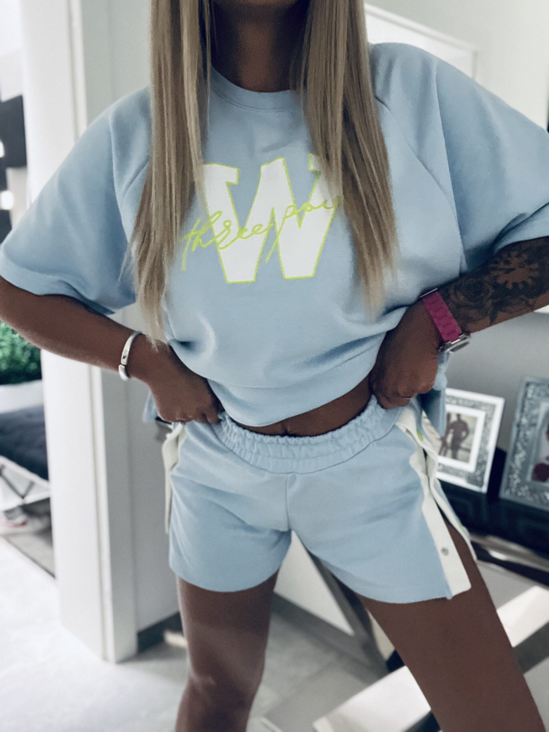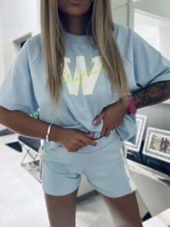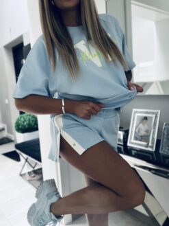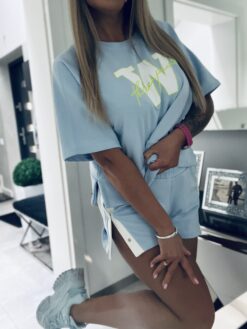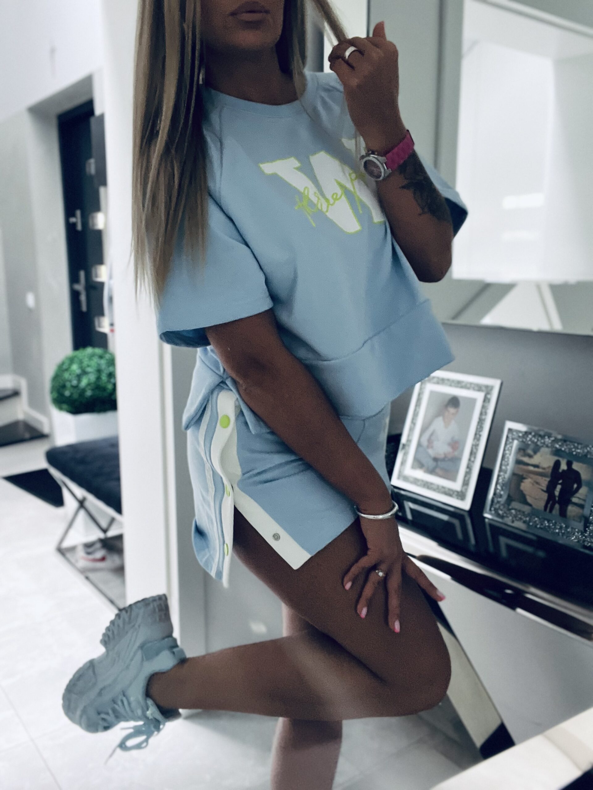 Stylowy komplet który łączy ze soba styl i wygodę , tworząc niezastąpiony element codziennych stylizacji. Zestaw który został wykonany z wysokiej jakości bawełny z dodatkiem elastanu . Model składający się z bluzki oraz szortów . Górna część o lekko rozszerzanym kroju charakteryzuje się przepięknym kontrastowym nadrukiem na przodzie w stylowej kolorystyce , szorty natomiast o dopasowanym kroju wyróżniają się stylowymi napkami po bokach. Duet ten tworzy spójny i modny zestaw w casualowym wydaniu .