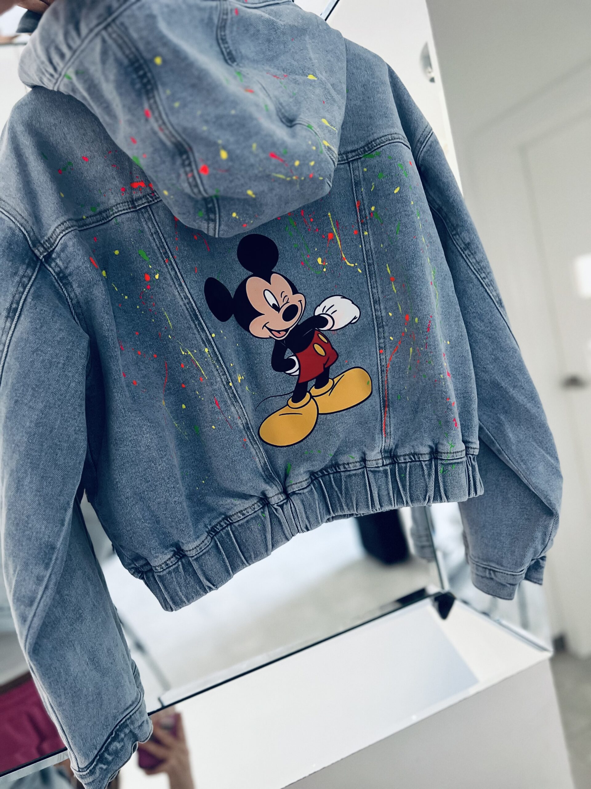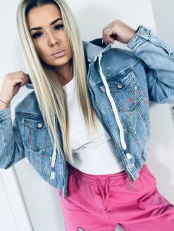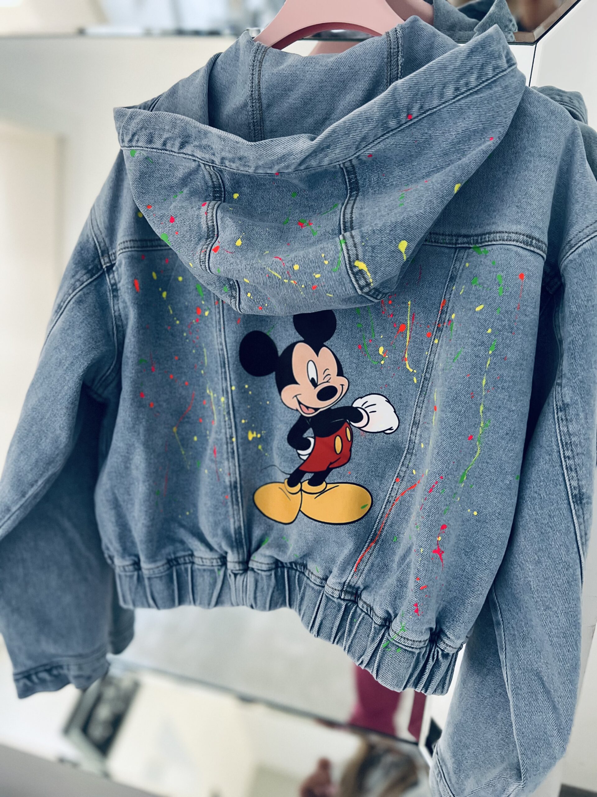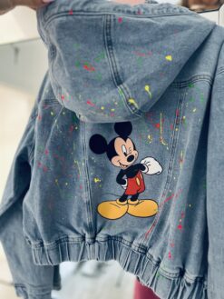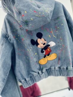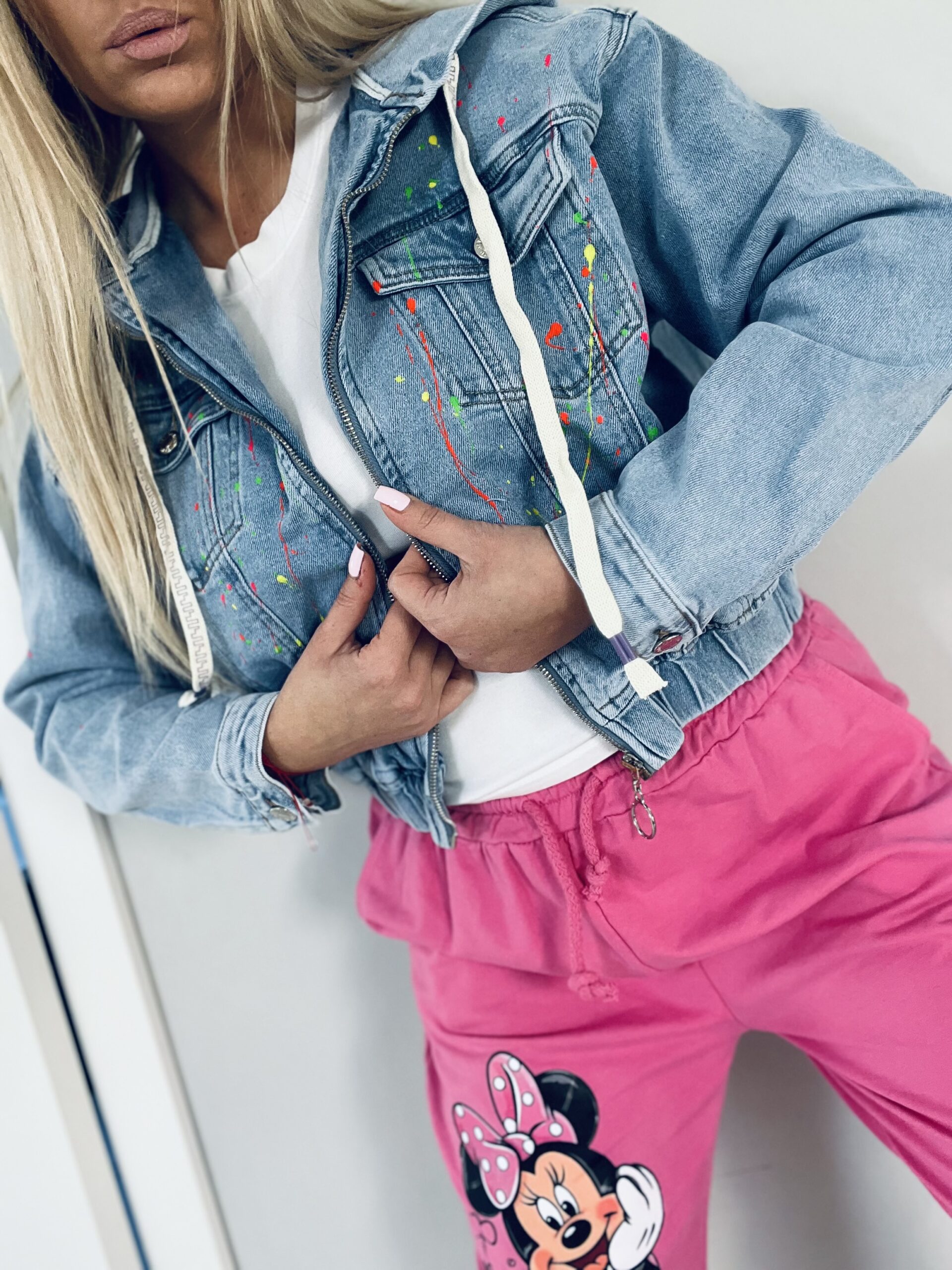 Ta kurtka to totalnie unikatowy model ! Stworzona po to by zwracać uwagę i przykuwać wzrok. Przepiękny fason z gumką w pasie oraz szerokim kapturem. Kurtka która nietylko jest praktyczna ale także stylowa i oryginalna. Z pewnością zrobi wrażenie Twoim wiosennym stylizacjom ! Model wykonany z miękkiego jeansu. Przód przepięknie nakropiony neonowymi kolorami , tył robi ogromną robotę – duży motyw MICKEY MOUSSE pozostanie zapamiętany na długo. Jej genialny krój zapewni komfort w noszeniu oraz gwarantuje wygodę i swobodę ruchów l. Kurtka którą założysz do jeansów, dresów lub legginsów na top bluzę lub t-shirt. Nadaj niepowtarzalnego uroku swojej stylizacji i zastanawiaj się – jeśli lubisz wyróżniać się z tłumu tą kurtka jest właśnie dla Ciebie !