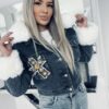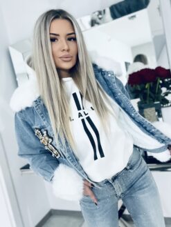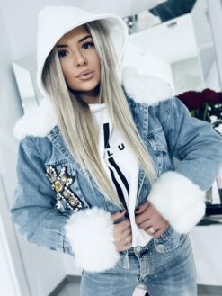 Kurtka jeansowa z białym puszkiem niebieska