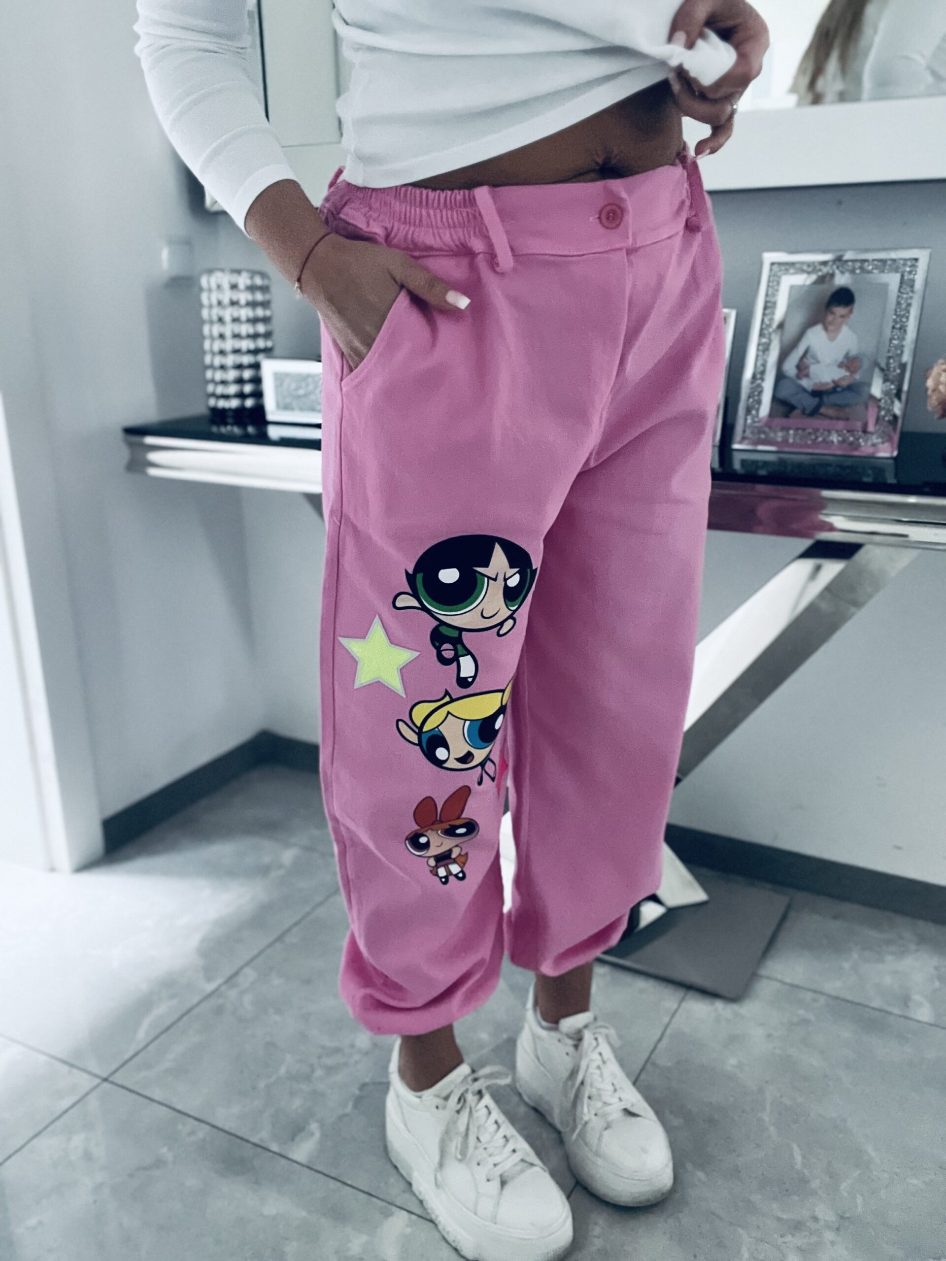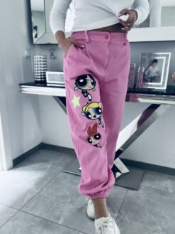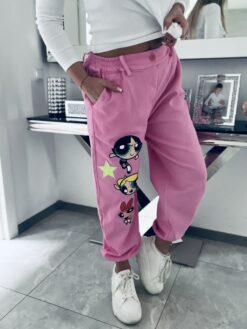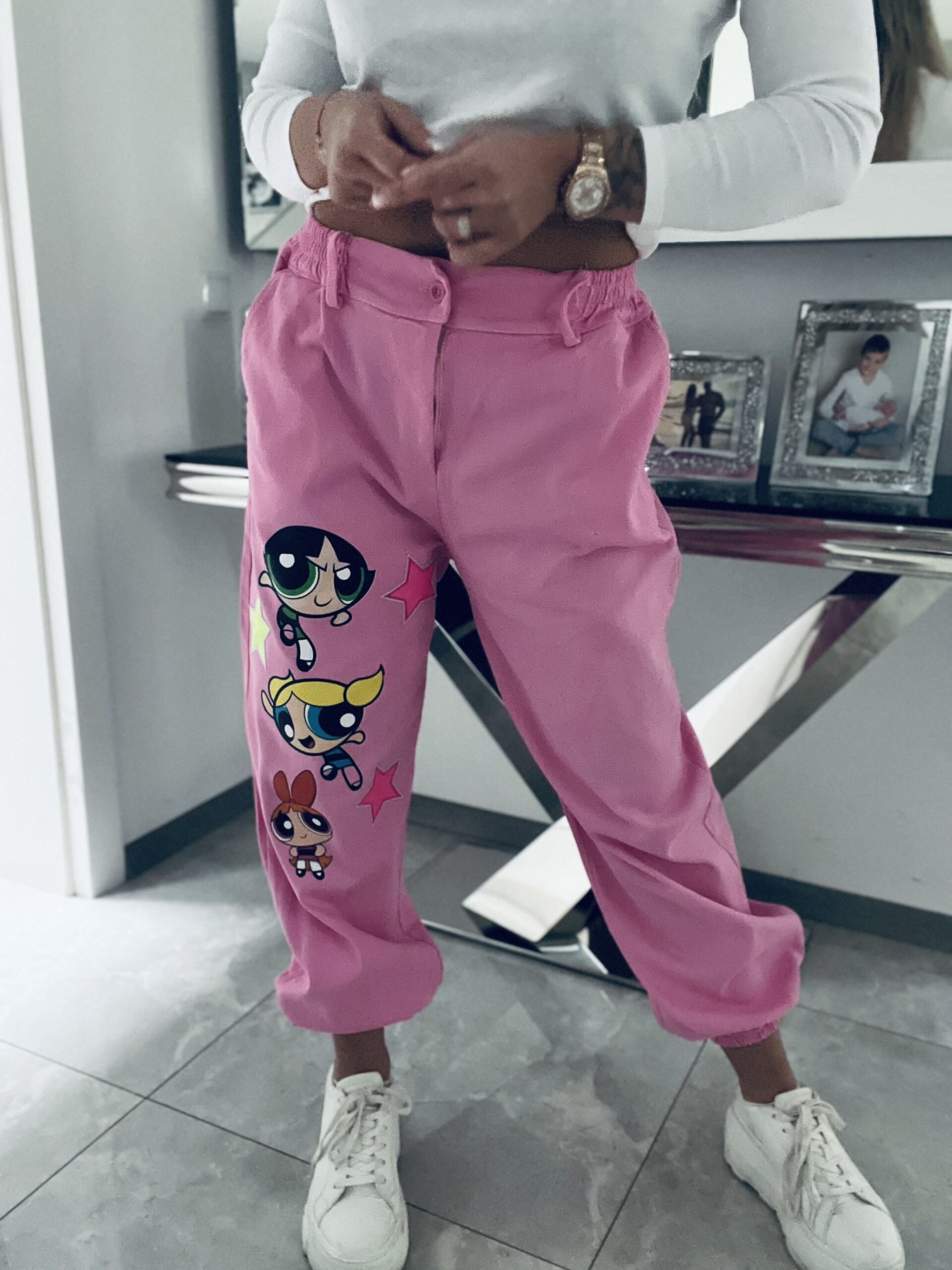 Świetne spodnie o luźnym balonowym fasonie to niesamowicie modna propozycja na wiosnę ! Model wykonany z lekkiego materiału nada lekkości i komfortu noszenia. Modnego charakteru nadają unikatowe motywy kultowych atomówek na nogawce, które z pewnością przykuwają uwagę i przyciągają wzrok. Spodnie wykończone gumką w pasie oraz na nogawkach dzięki czemu pasują na każdą sylwetke. Model który założysz do sportowych i casualowych stylizacji z białym topem lub kurteczka jeansową będą prezentować się przepięknie !