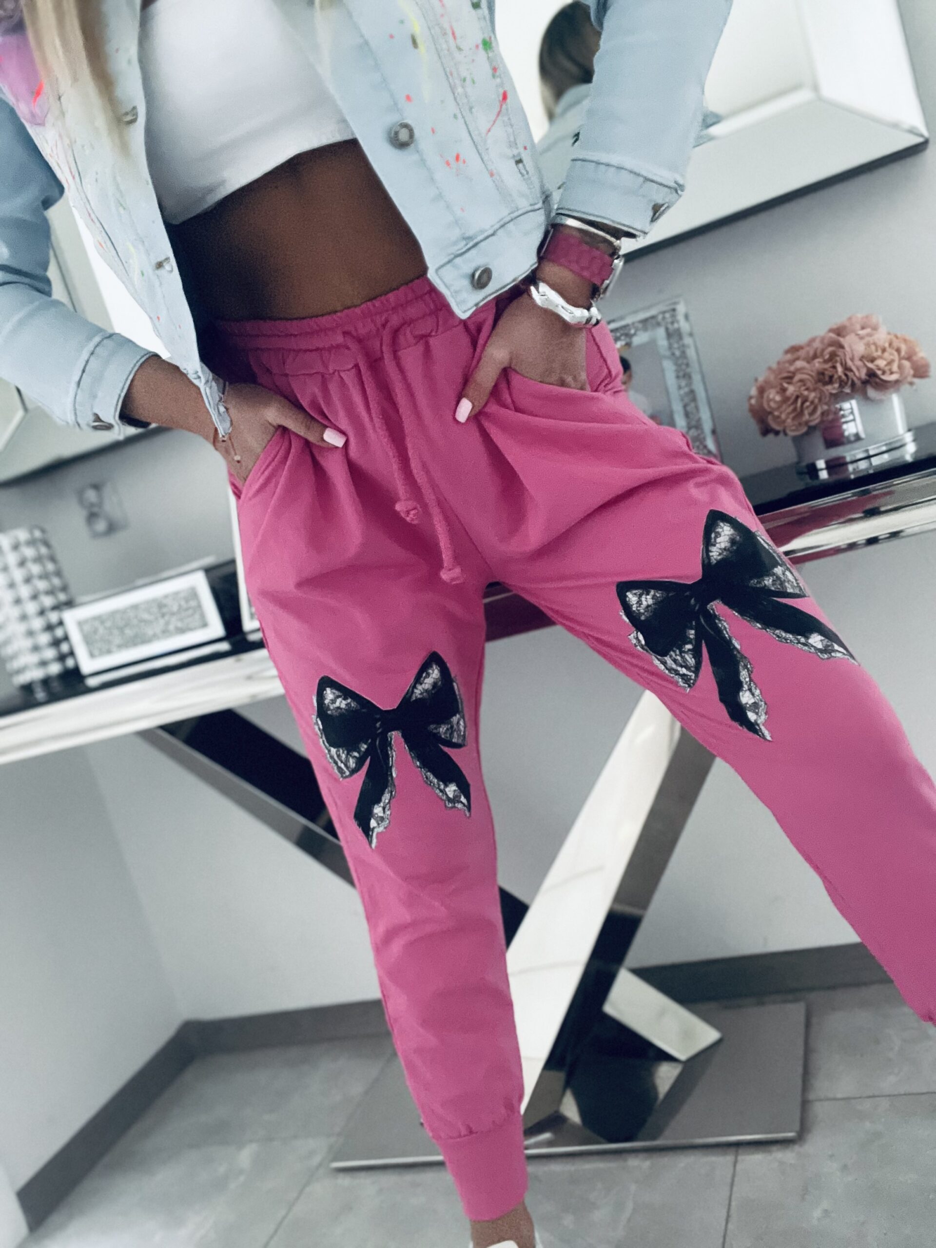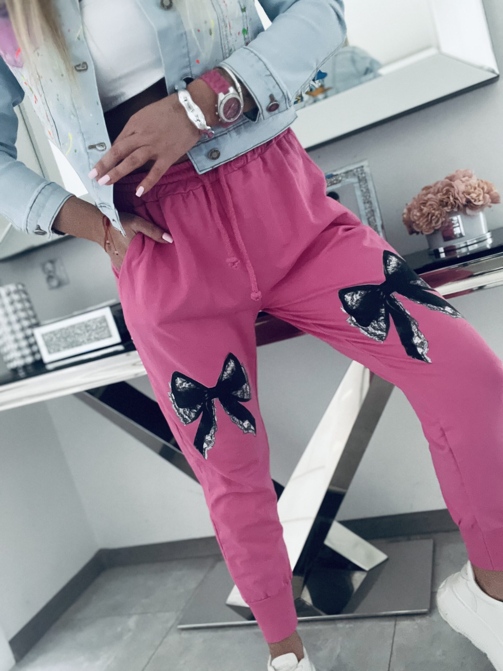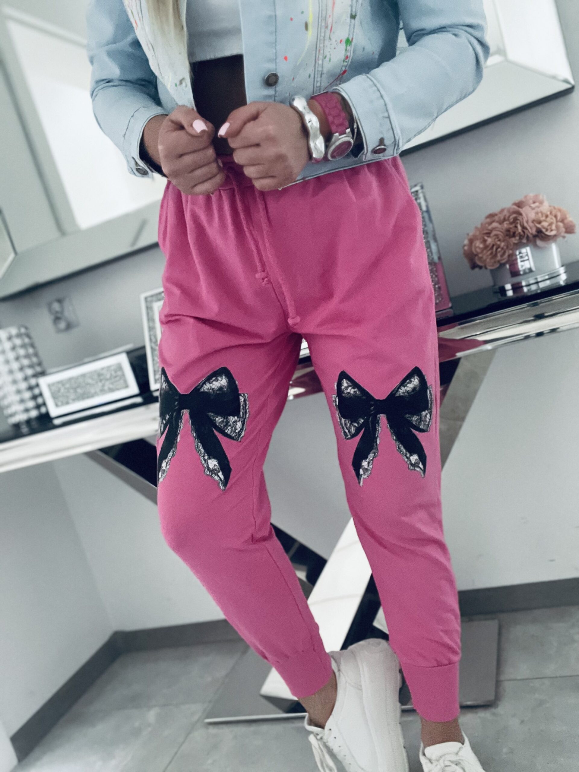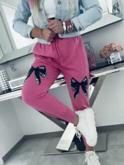 Fenomenalne spodnie dresowe, które pokochasz od pierwszego wejrzenia! Przepiękny żywy kolor który idealnie wbije się w wiosenno letnie trendy. Wykonane z miękkiej, przewiewnej i elastycznej bawełny. Doskonały model dla każdej sylwetki, wykończony szerokimi ściągaczami przy nogawkach oraz wygodną gumą w pasie. Spodnie z charakterystycznym motywem kokardy na nogawkach zwracają uwagę i nadają oryginalnego charakteru .