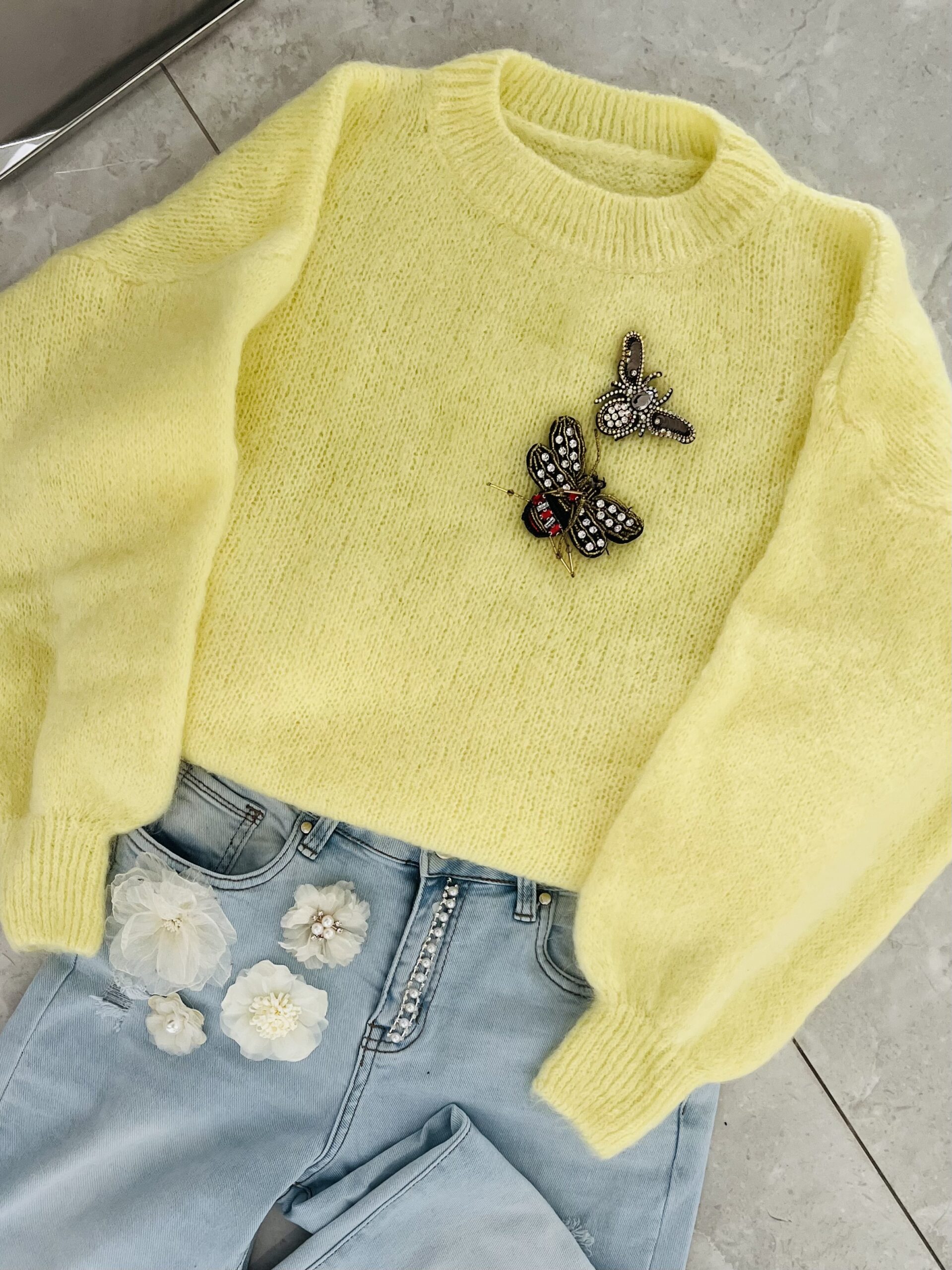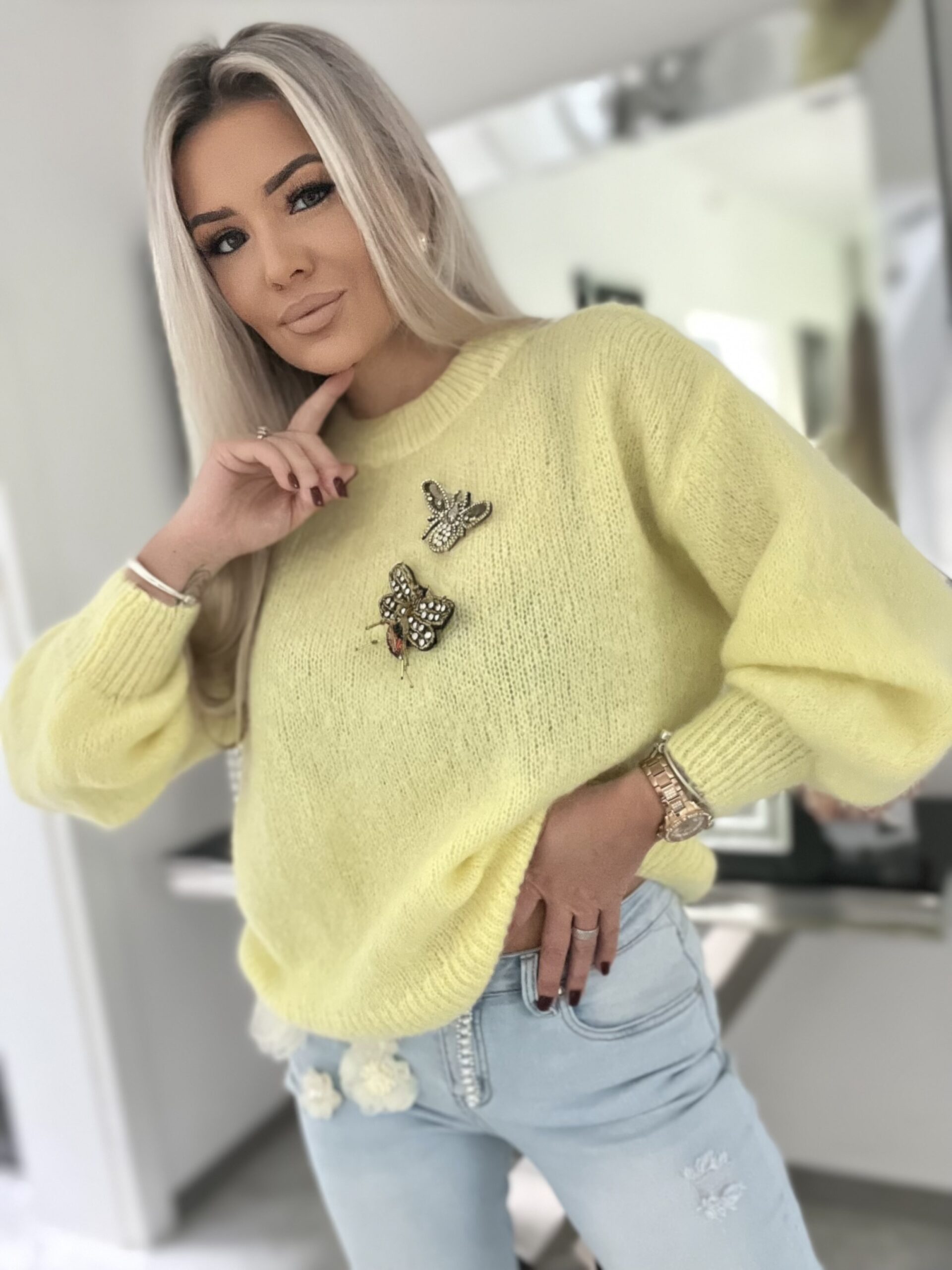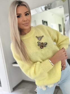 Sweter z przeuroczym biżuteryjnym dodatkiem to doskonała baza do mnóstwa dziewczęcych stylizacji. Model o klasycznym kroju, wykończony został ściągaczami. Uwagę zwracają piękne mieniące się ręcznie przyszywane ozdoby. Bardzo wygodny sweterek w pięknym pastelowym odcieniu, który zapewni ciepło i komfort podczas noszenia. Świetnie skomponujesz go z jeansami lub legginsami i stworzysz idealną jesienną stylizacje.