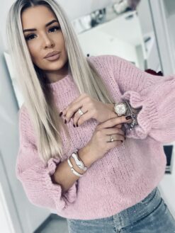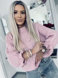Uroczy sweter z wyjątkowo delikatnej i miękkiej tkaniny z pewnością zachwyci Cię swoją strukturą oraz wykonaniem. Model w przepięknym odcieniu różu który jest niesamowicie twarzowy. Bardzo przytulny i stylowy który pokochasz za niepowtarzalny urok. Idelany zarówno do codziennych jak i bardziej eleganckich stylizacji- sprawdzi się zawsze. Dziewczęce wykończenie przy rękawach nadaje uroku i modnego charakteru.