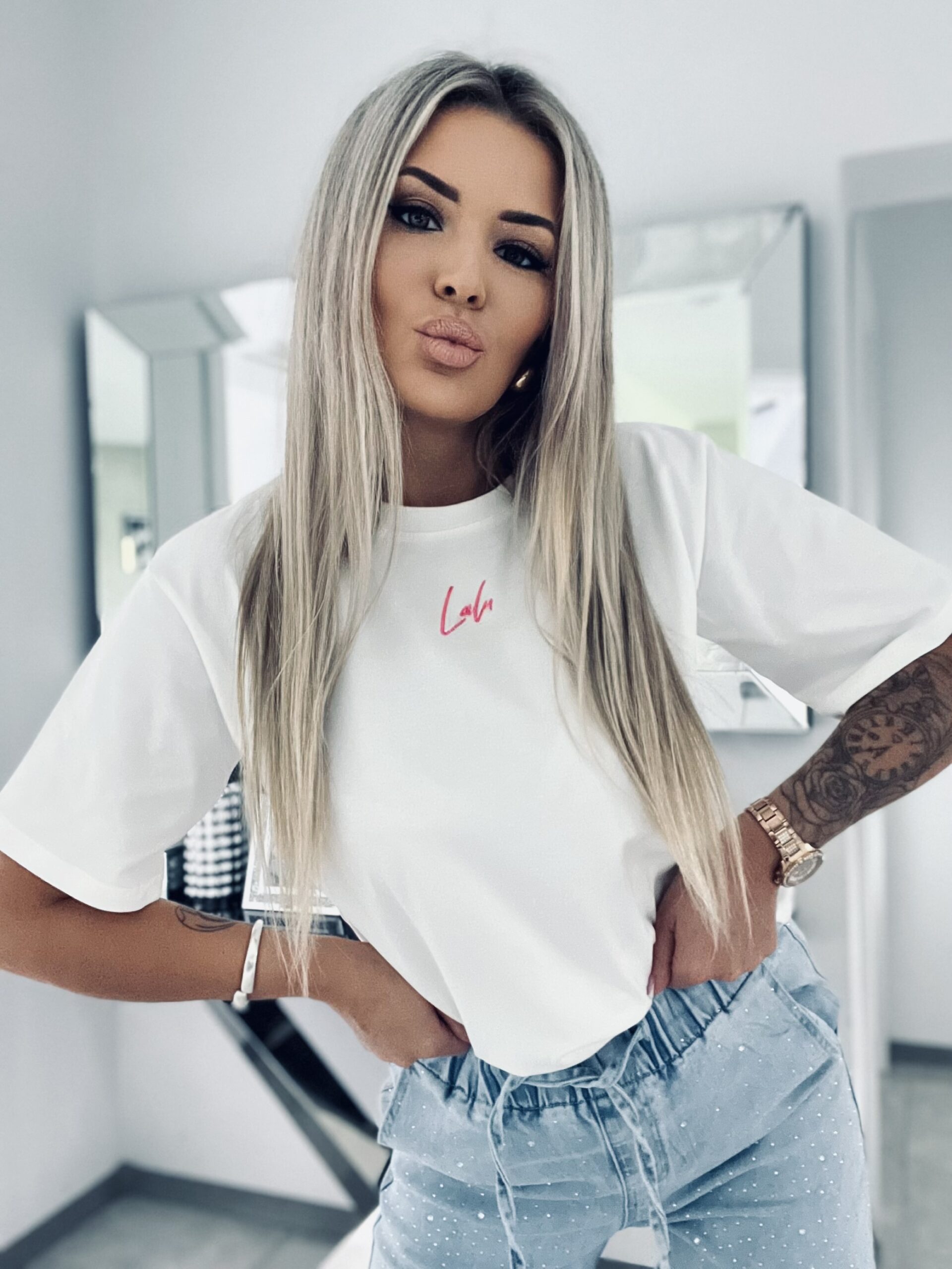 Ten klasyczny t-shirt z minimalistycznym logo to konieczność w szafie. Bluzeczka wykonana z najwyższej jakości bawełny z dodatkiem elastanu. Haftowane Logo w kolorze różowym zwraca swą uwagę. Klasyczny krój pozwoli na komfortowy i wygodny ubiór. Idelany do casualowych i codziennych stylizacji jak i również pod marynarkę czy kurtkę. Model od polskiego producenta LaLu to ponadczasowy klasyk a jednocześnie coś co założysz do każdej stylizacji .