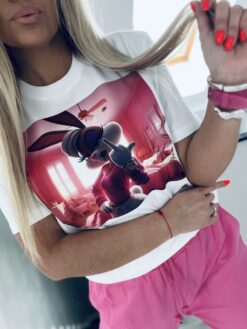 Rewelacyjny t-shirt wykonany z miękkiej oddychającej bawełny. Model który robi wrażenie swoim bajkowym motywem który w tym sezonie króluje na premierach modowych. Świetny model do jeansów lub dresów, idealnie komponuje się z naszymi spodniami . Ten t-shirt to połączenie stylu, wygody oraz najlepszej jakości na rynku! Sprawdź sama a nie pożałujesz ❤️